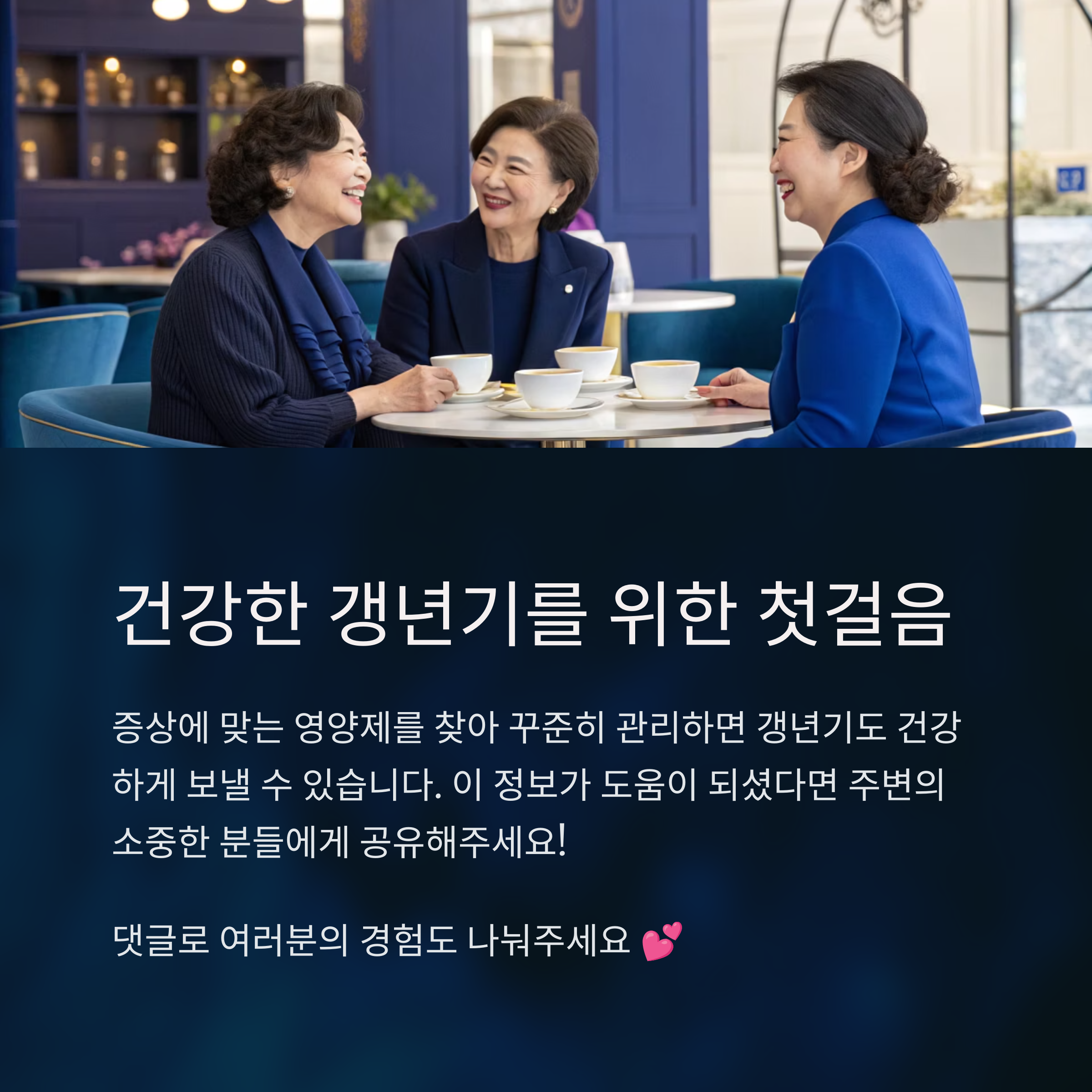따라서 많은 분들이 갱년기 영양제를 통해 증상을 완화하고 건강을 유지하려고 합니다.