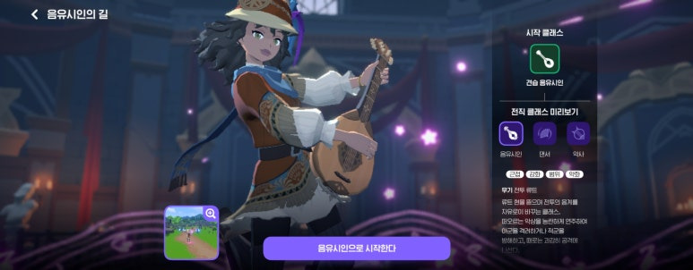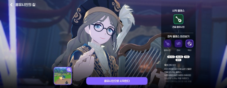 - 특징: 낭만적인 콘셉트가 매력적이나, 현재 가장 유저 수가 적은 직업입니다. 느린 스킬 사용 속도로 인해 피격 위험이 높습니다.