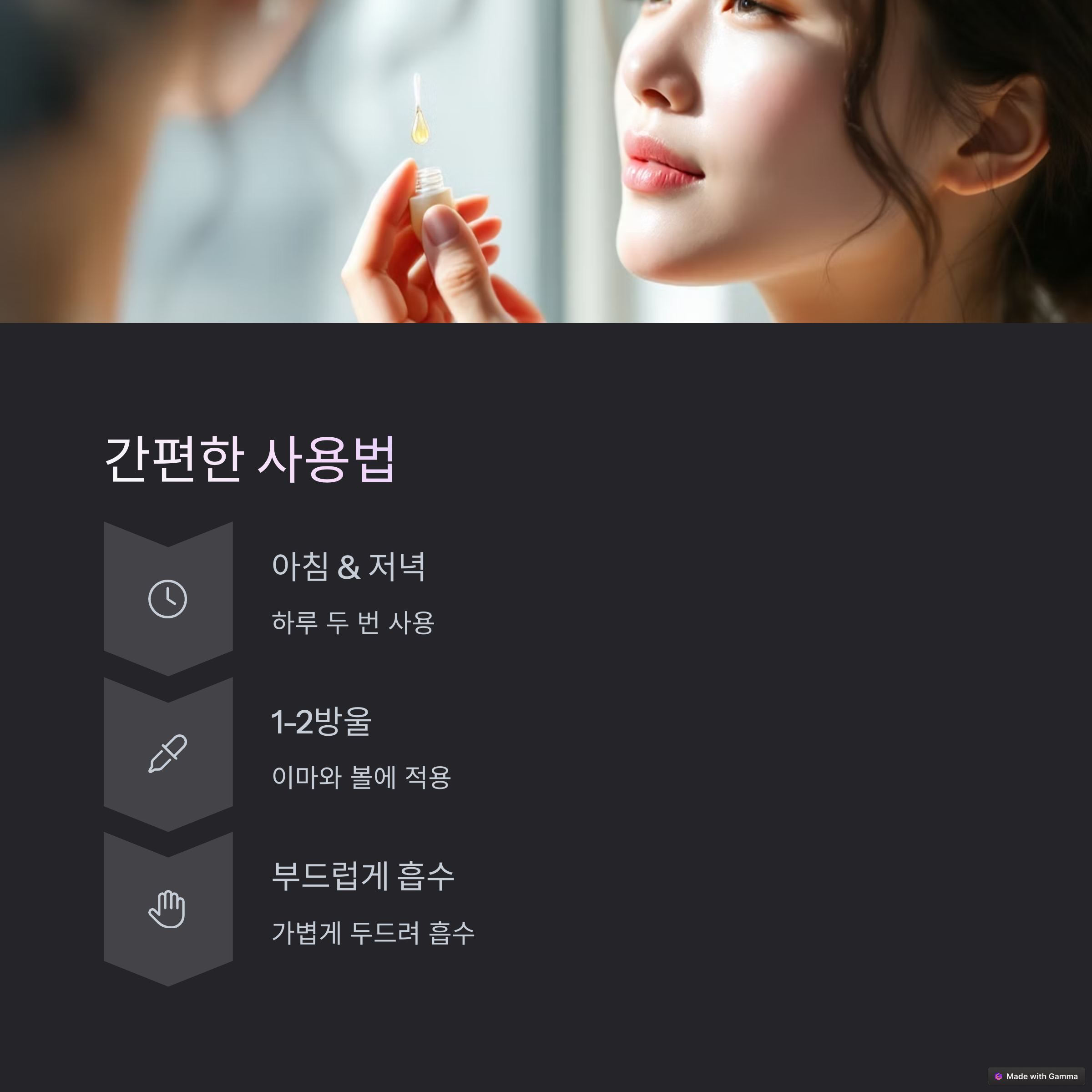 앰플을 사용할 때는 세안 후 첫 단계에서 사용하는 것이 흡수력을 높일 수 있는 방법입니다. 손바닥으로 온기를 전달하듯 가볍게 눌러 흡수시키면 피부 속까지 영양이 전달되는 듯한 느낌을 받을 수 있습니다. 특히 환절기나 중요한 약속이 있는 전날에는 집중 케어 앰플로 활용하면 피부 컨디션이 한층 더 좋아지는 걸 느낄 수 있습니다.