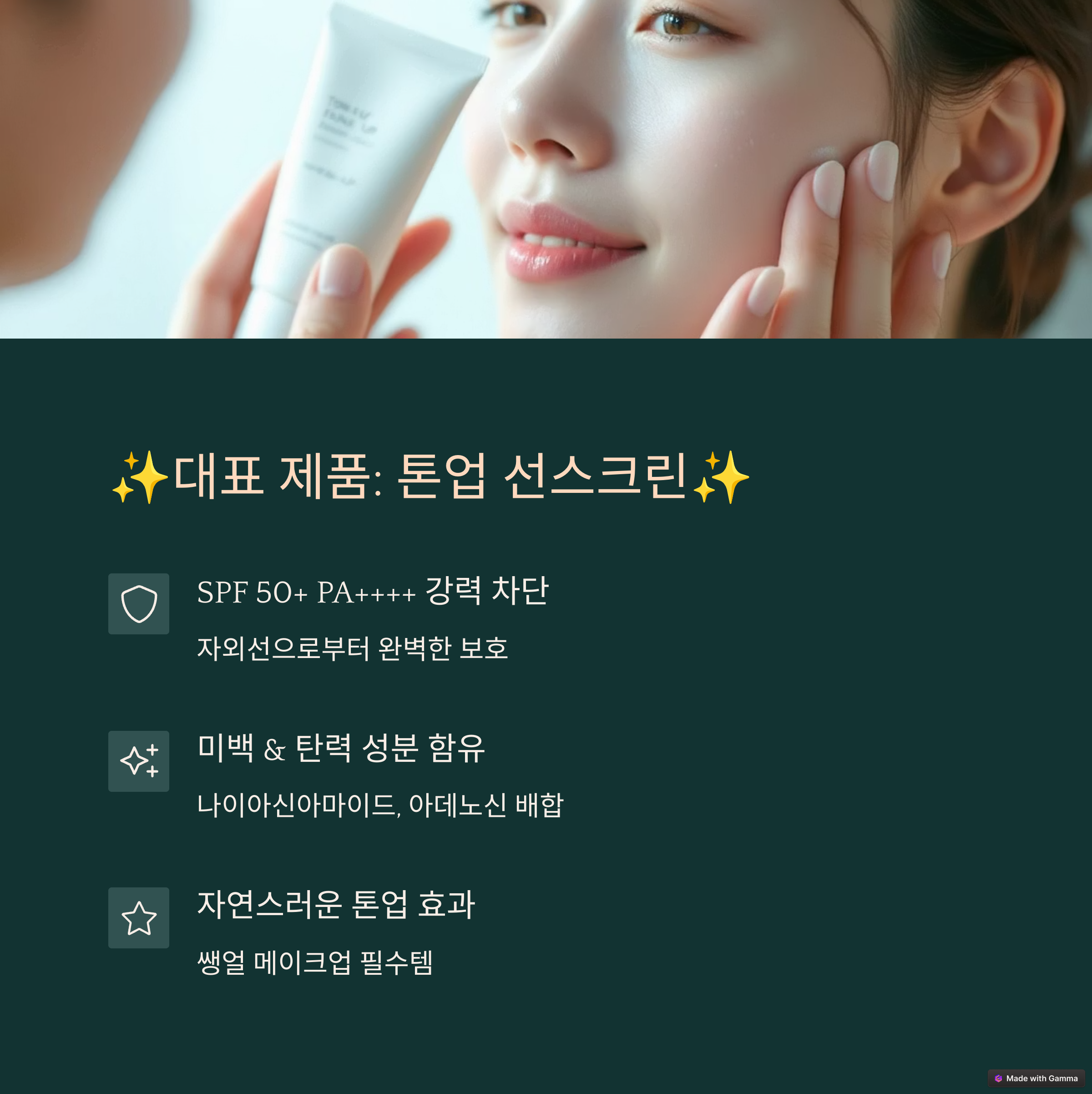 여름철에는 자외선이 강해지기 때문에 더욱 철저한 관리가 필요한데요, 이 제품은 SPF50+으로 강한 자외선 차단 효과를 제공합니다. 자외선으로 인한 피부 손상을 예방해주며, 기미 잡티가 생기는 것을 최소화합니다. 피부가 건강해 보이길 원하신다면 꼭 사용해 보세요.