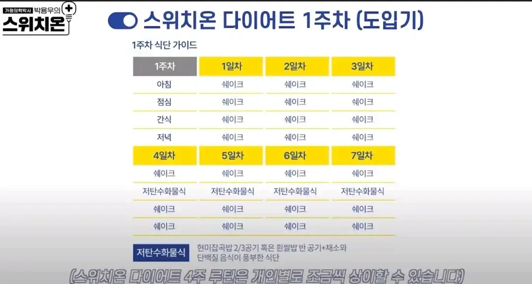 스위치온 다이어트의 단계별 진행 방법부터 허용 식품, 그리고 실생활에서 활용 가능한 식단표까지