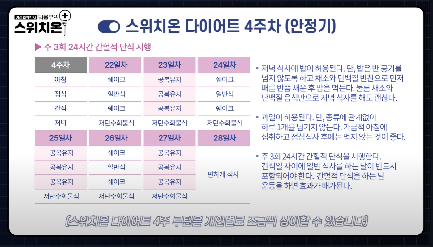 스위치온 다이어트의 단계별 진행 방법부터 허용 식품, 그리고 실생활에서 활용 가능한 식단표까지