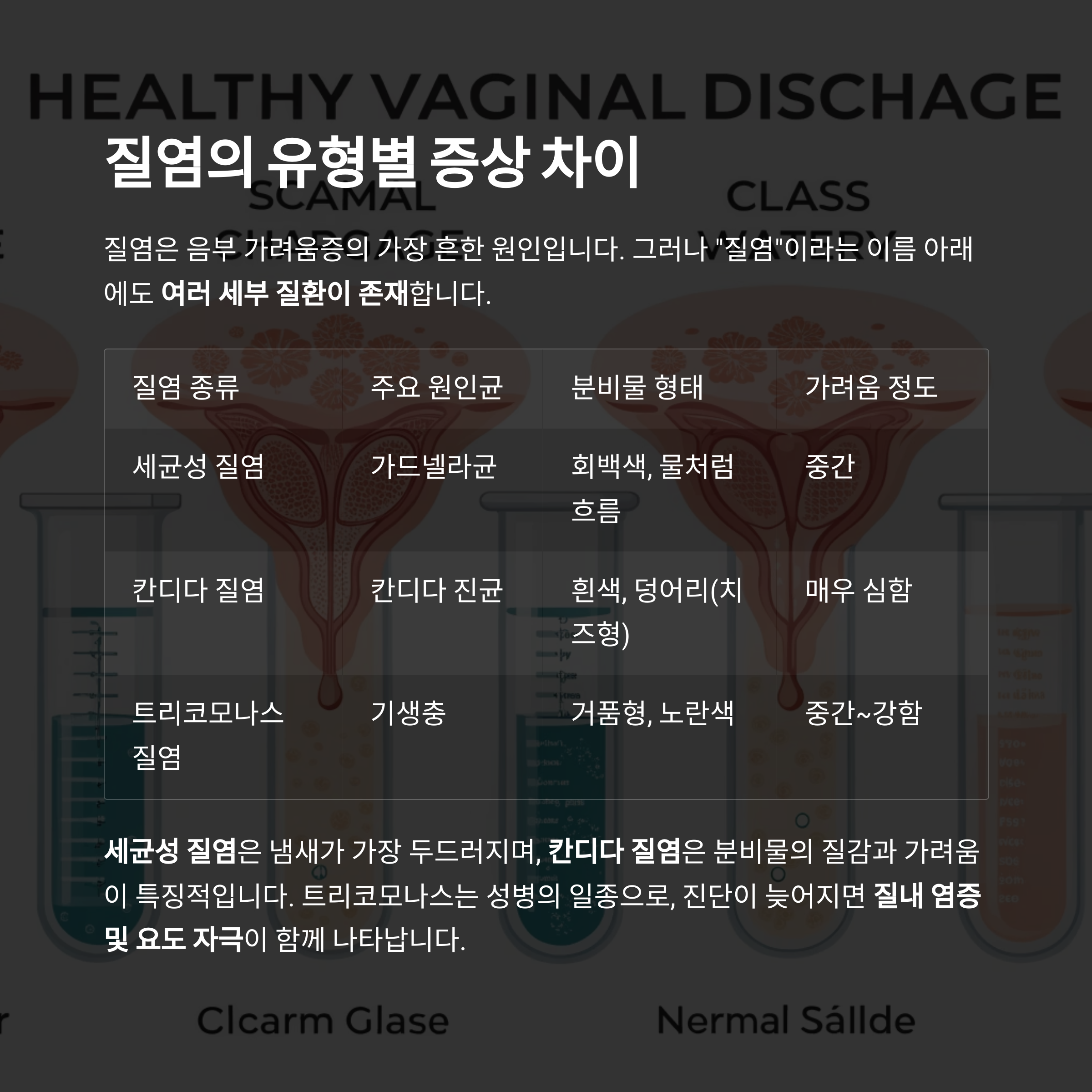 질염 종류 주요 원인균 분비물 형태 가려움 정도