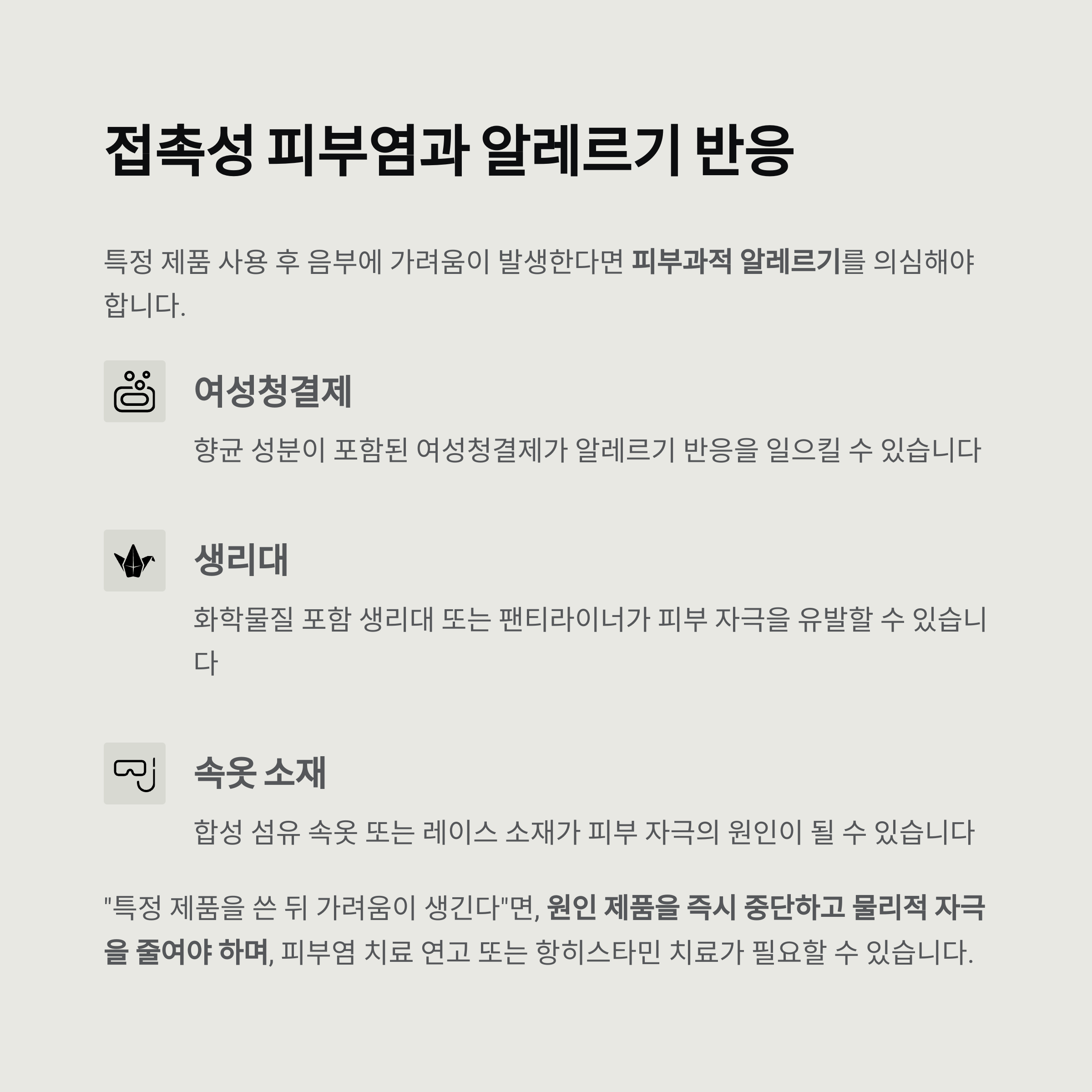 접촉성 피부염과 알레르기 반응: 화장품, 생리대, 속옷이 원인