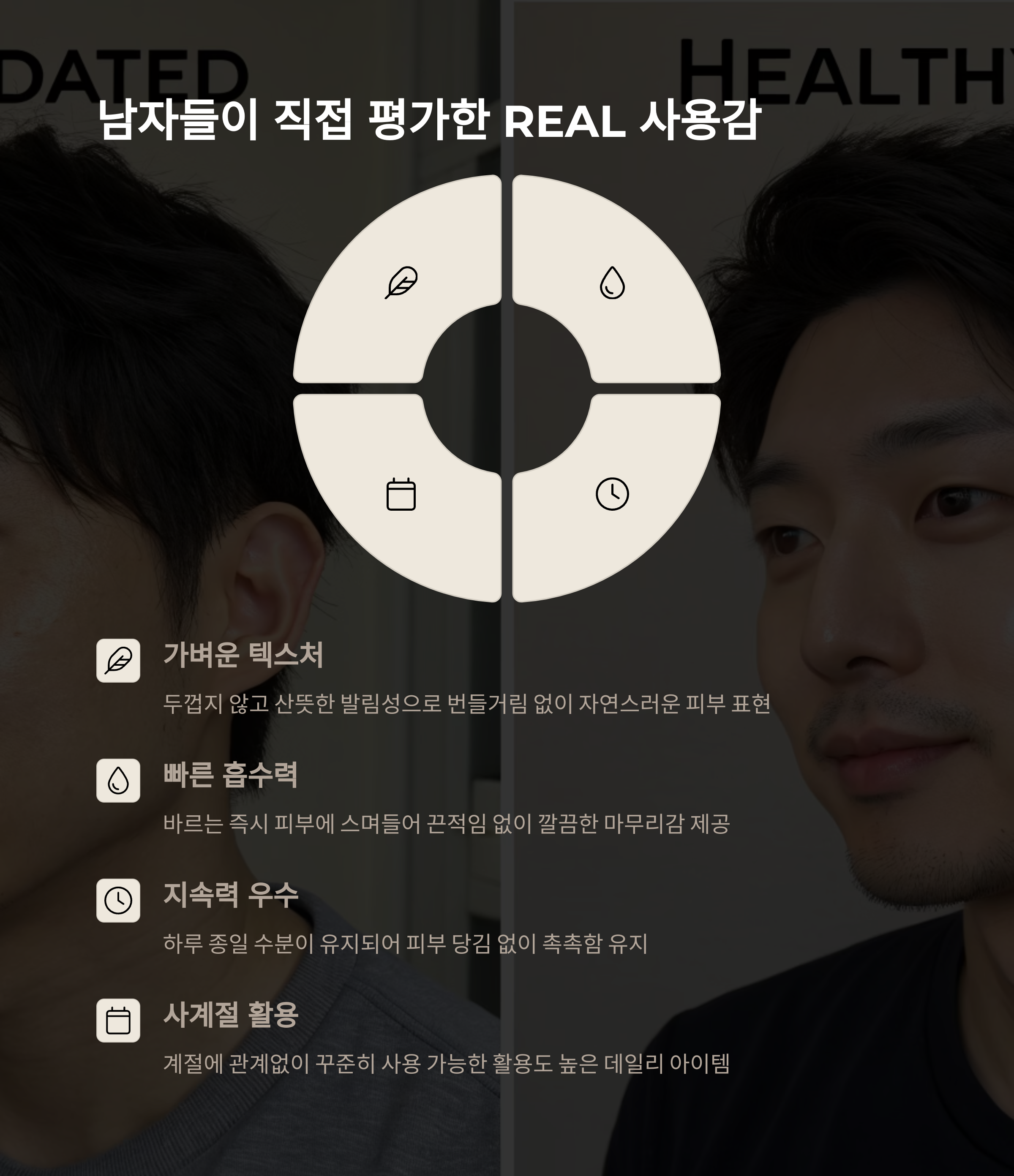 피부 컨디션에 따라 단계별 사용 가능 제품별 효과 정리 및 선택 팁 제공 사용감, 흡수력 등 실사용 기준 설명