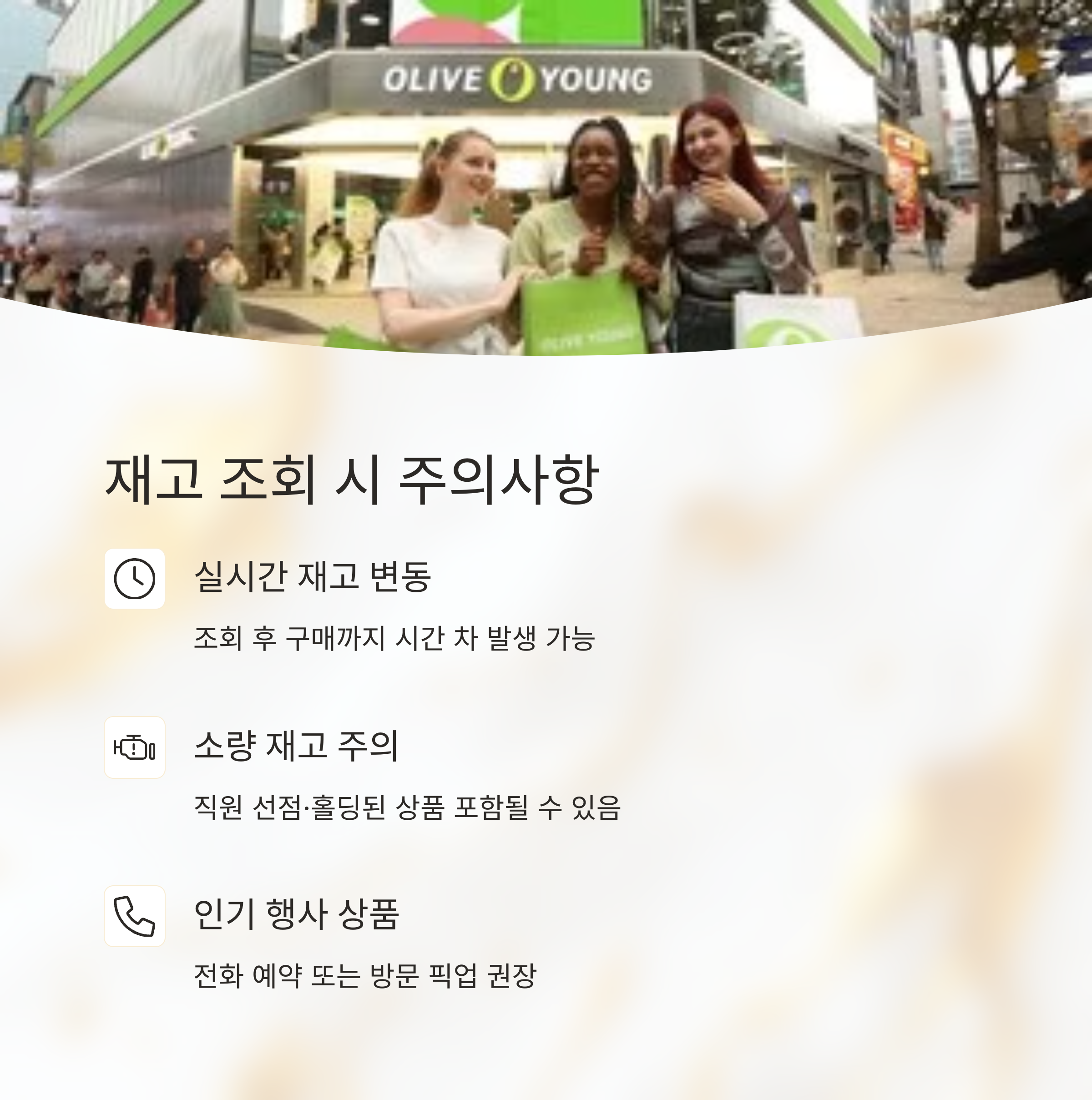 최근 올리브영은 재고 조회와 함께 '매장픽업 서비스'도 제공 중입니다.