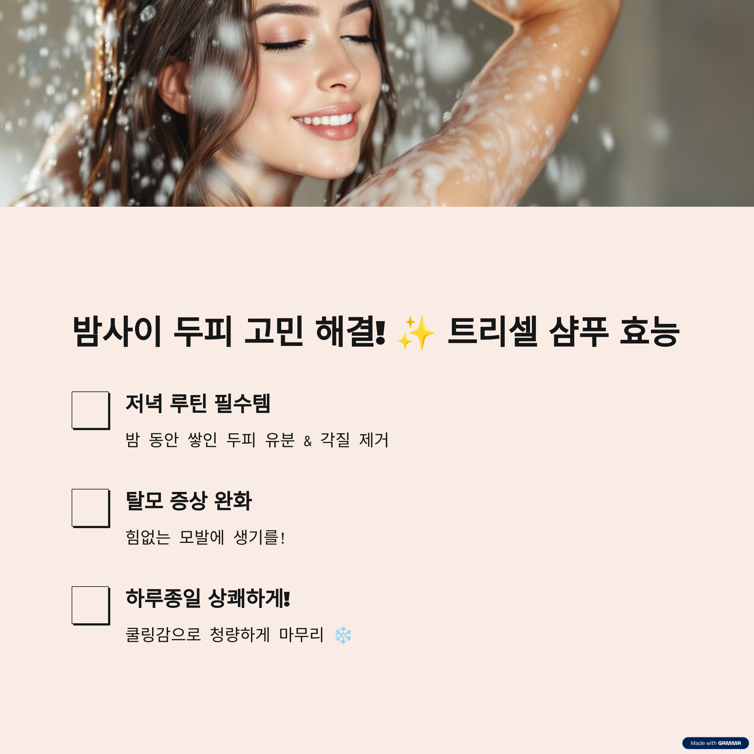 | 실리콘프리로 자극 없이 사용 가능 | 청량감 있는 마무리, 강력한 세정력 | 매일 사용하는 데일리 샴푸 찾는 분 |