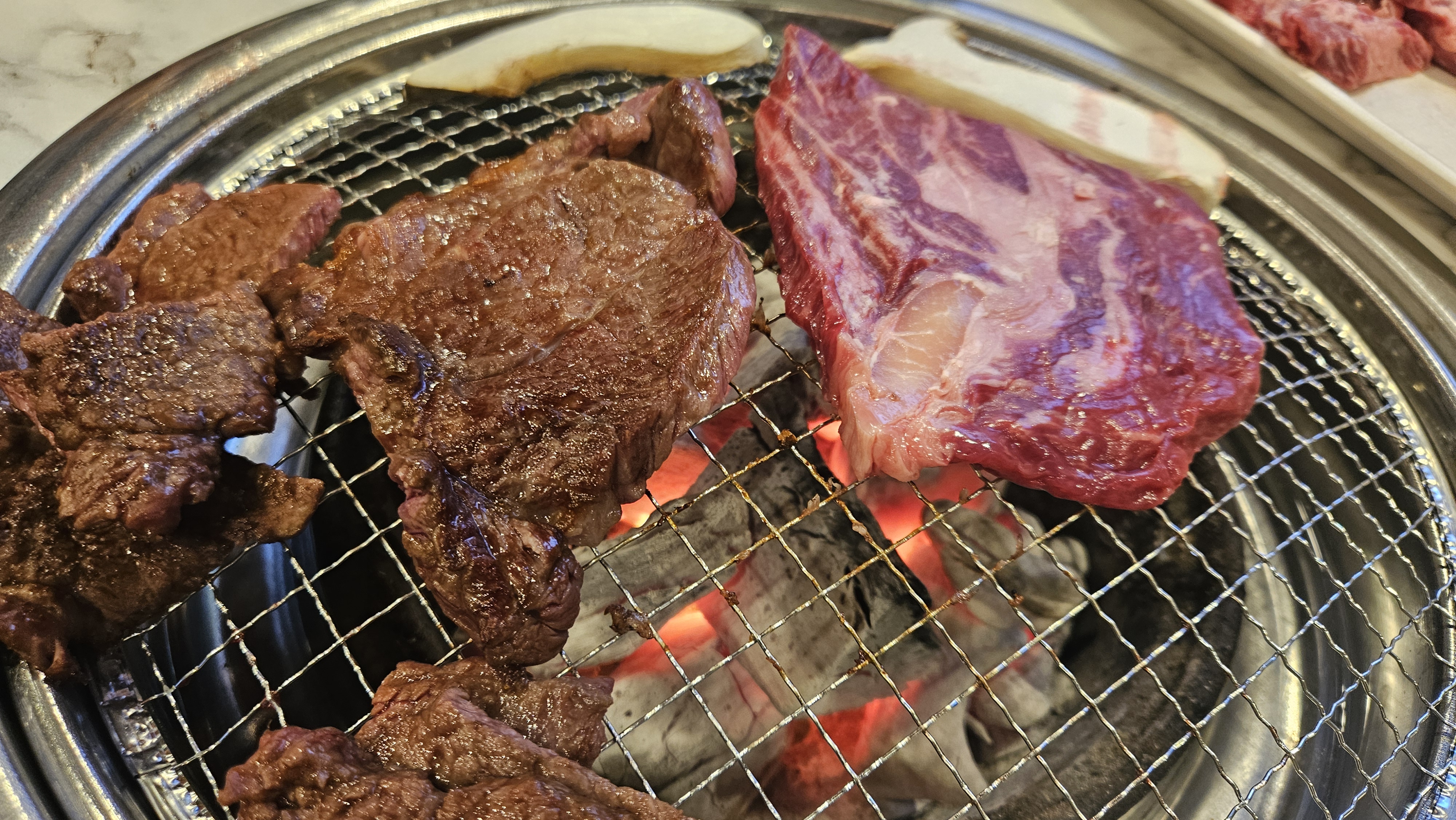 가격 대비 품질이 뛰어난 이 음식점은 숯불에 구운 소고기를 즐기기에도 최적의 장소입니다. 소고기는 약간 핏기가 돌 때 먹는 것이 가장 맛있으며, 너무 익히지 않도록 주의하는 것이 좋습니다. 직원이 구워주는 고기는 특히 맛이 뛰어나며, 숯불구이 버섯도 함께 즐기면 더욱 풍미를 느낄 수 있습니다. 이 가격대에서 숯불에 구운 소고기를 맛볼 수 있다는 점은 큰 장점입니다.