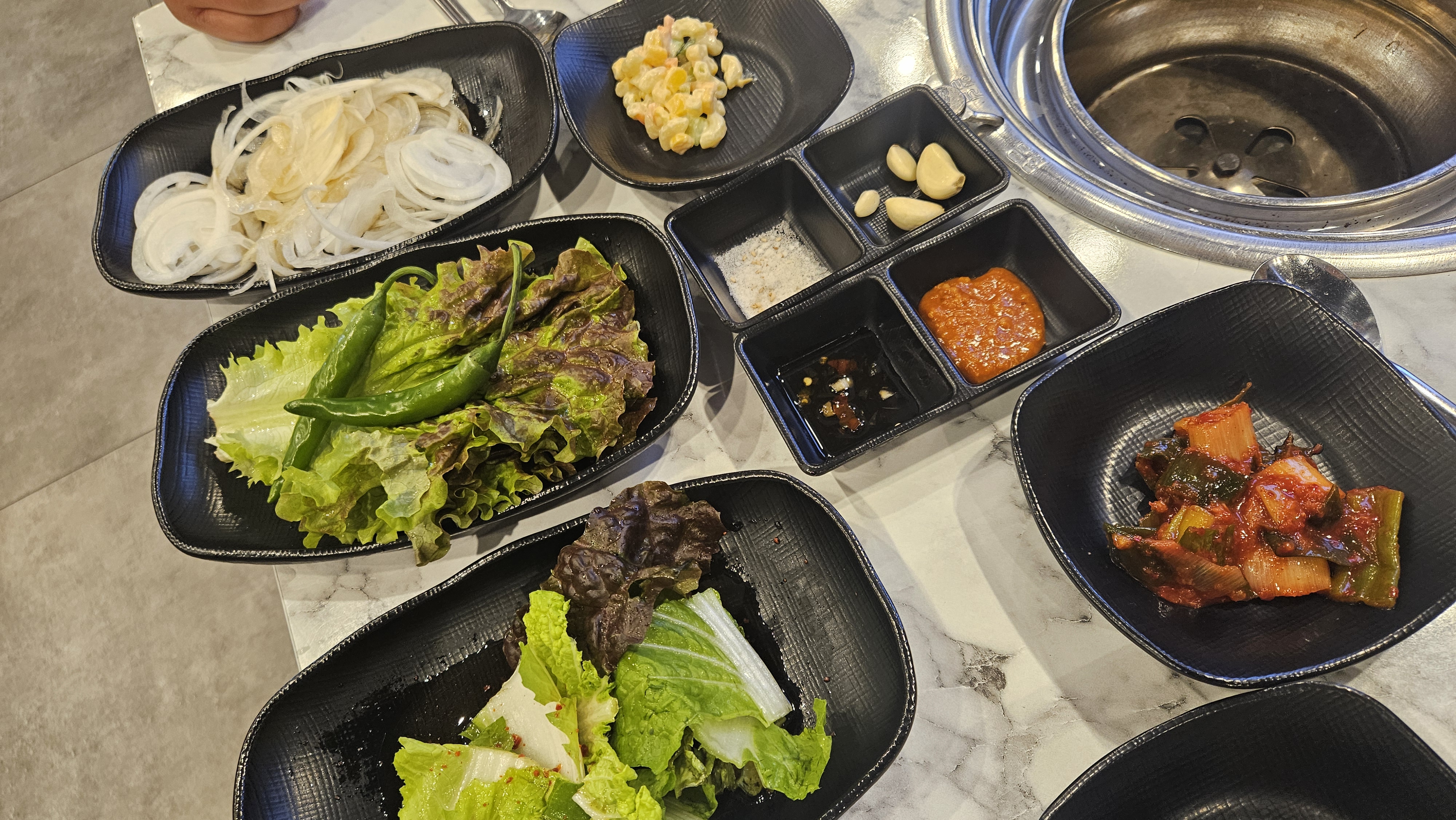 또한, '공깃밥'과 '된장찌개'도 함께 즐기면 더욱 완벽한 식사를 할 수 있습니다. 공깃밥은 고기와의 조화가 뛰어나며, 된장찌개는 깊은 맛과 풍미로 식사의 만족도를 한층 높여줍니다. 이곳은 셀프서비스 방식으로 운영되기 때문에, 고객들은 원하는 만큼 반찬과 주류를 자유롭게 즐길 수 있습니다. 특히, 쌈 채소가 충분히 제공되며, 추가 주문 시에도 부담 없이 요청할 수 있어 편리합니다.