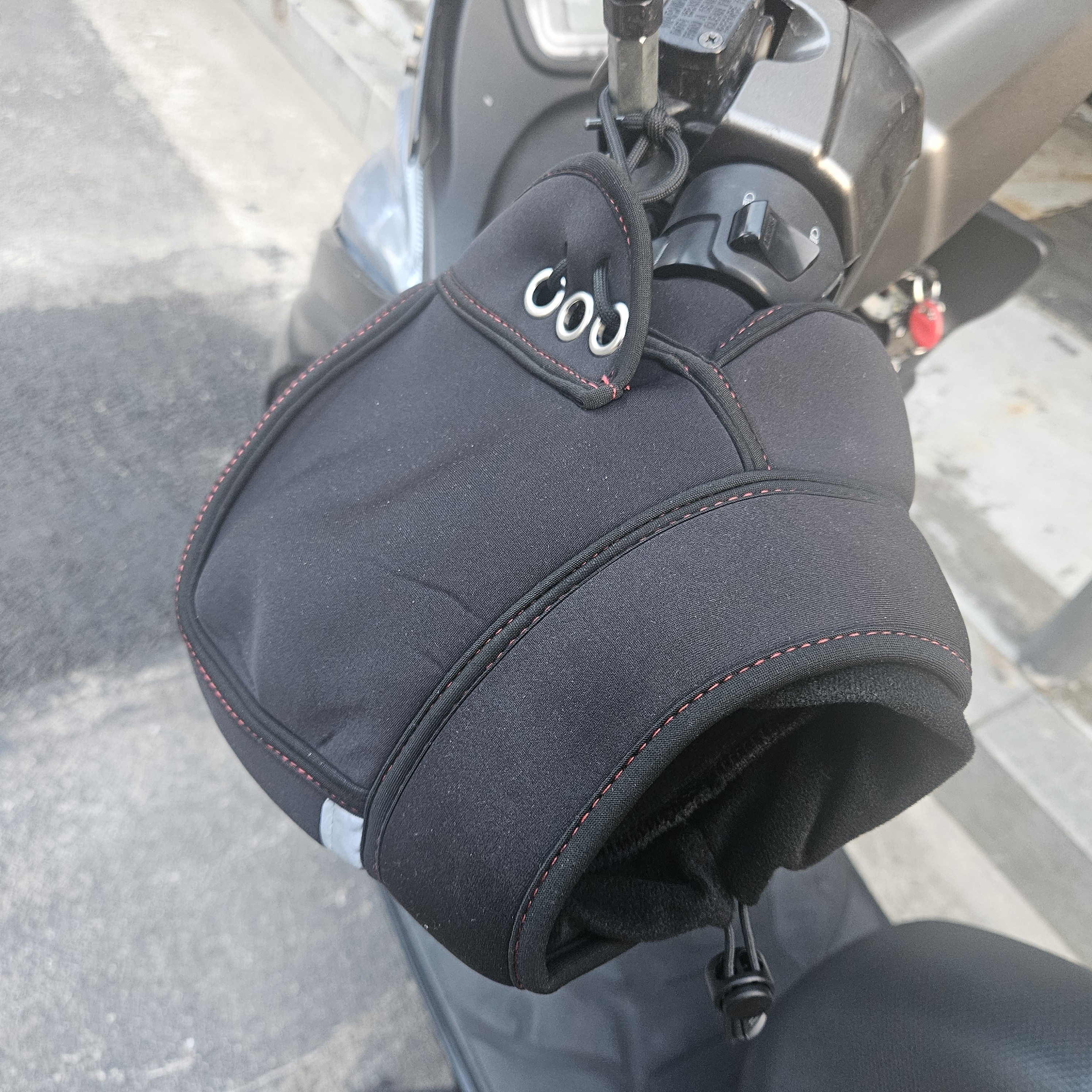 - 초기 적응의 필요성 (둔탁한 느낌): 손을 토시 안으로 넣고 빼는 과정이 맨손으로 타는 것보다는 당연히 번거롭습니다. 특히 급하게 손을 빼야 하는 상황(예: 정차 후 핸드폰 조작)에서 다소 둔탁한 느낌이 들 수 있습니다.
