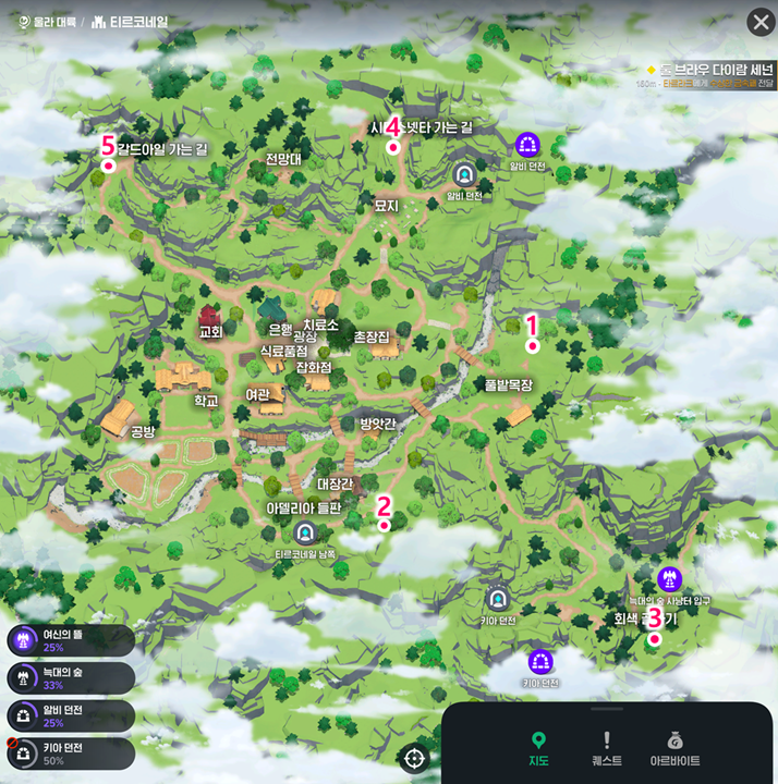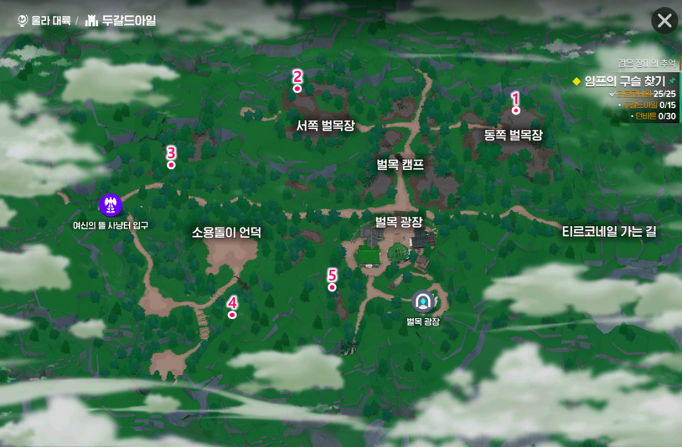 | 5 | 벌목 광장 인근 | 획득 후: 벌목 광장 문게이트 → 던바튼 북문 문게이트로 순간 이동 |