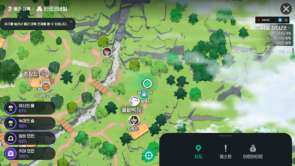 - 퀘스트 조건: '[새 둥지를 찾아라!]' 첫 퀘스트는 '모험가 길드' 퀘스트를 완료해야 시작 가능합니다.
