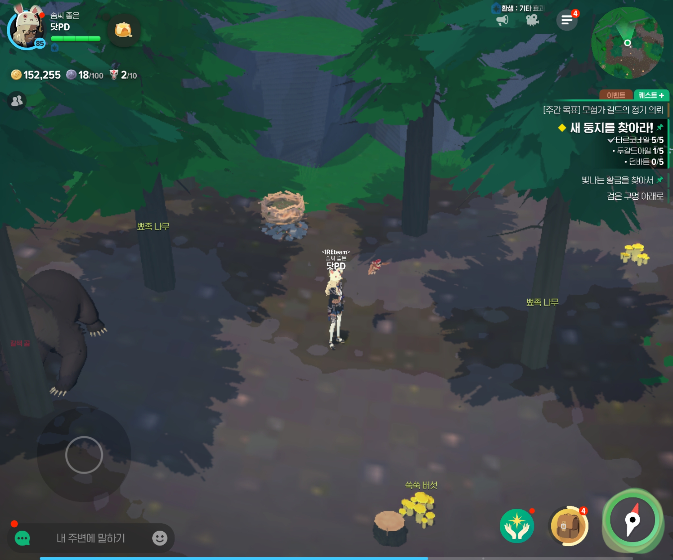 1. 동쪽 벌목장 부근 ( 획득 후: 직접 다음 위치로 이동 )